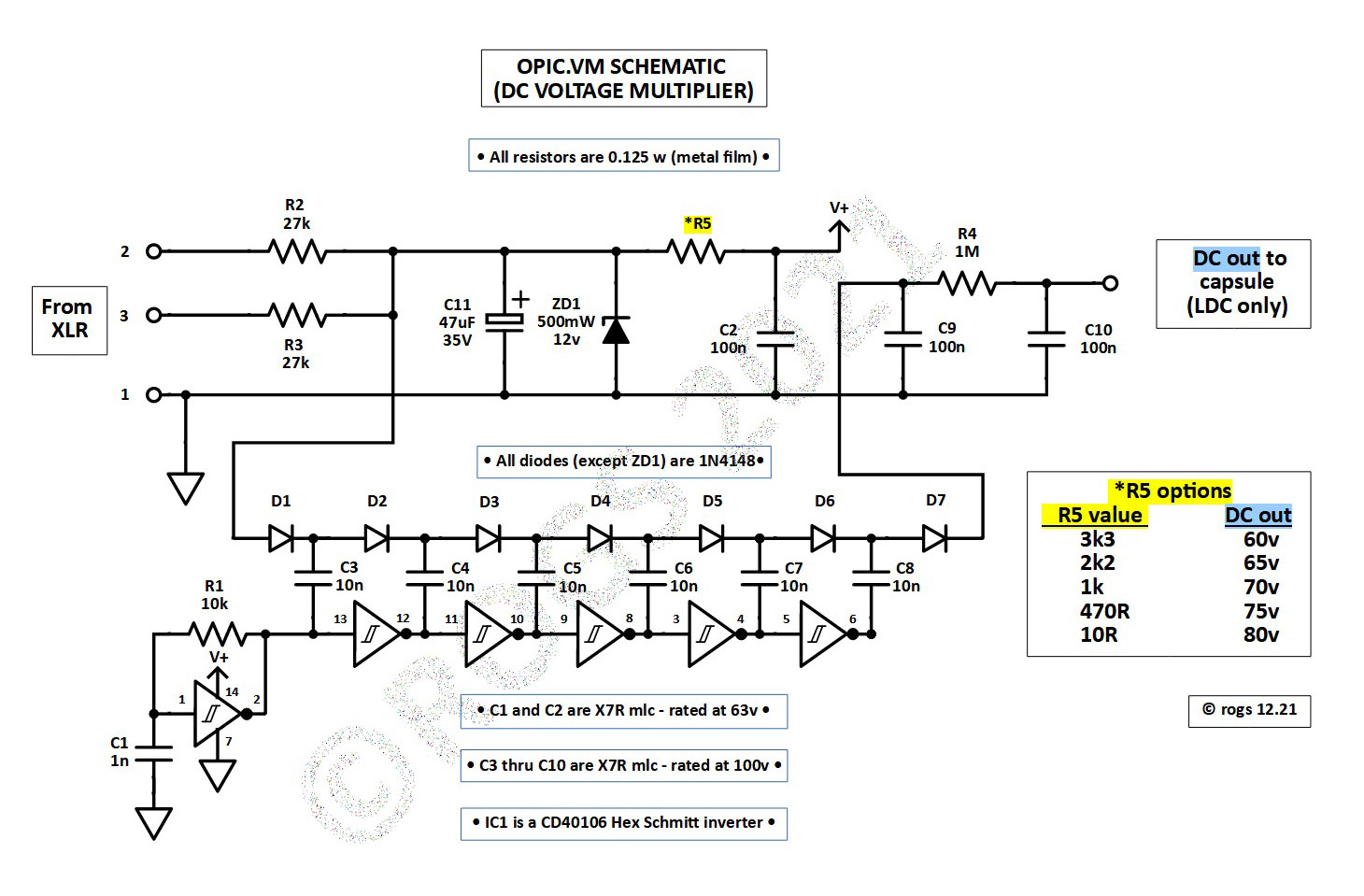 An LDC mic without a voltage multipler.... plus an alternative adjustable voltage multiplier