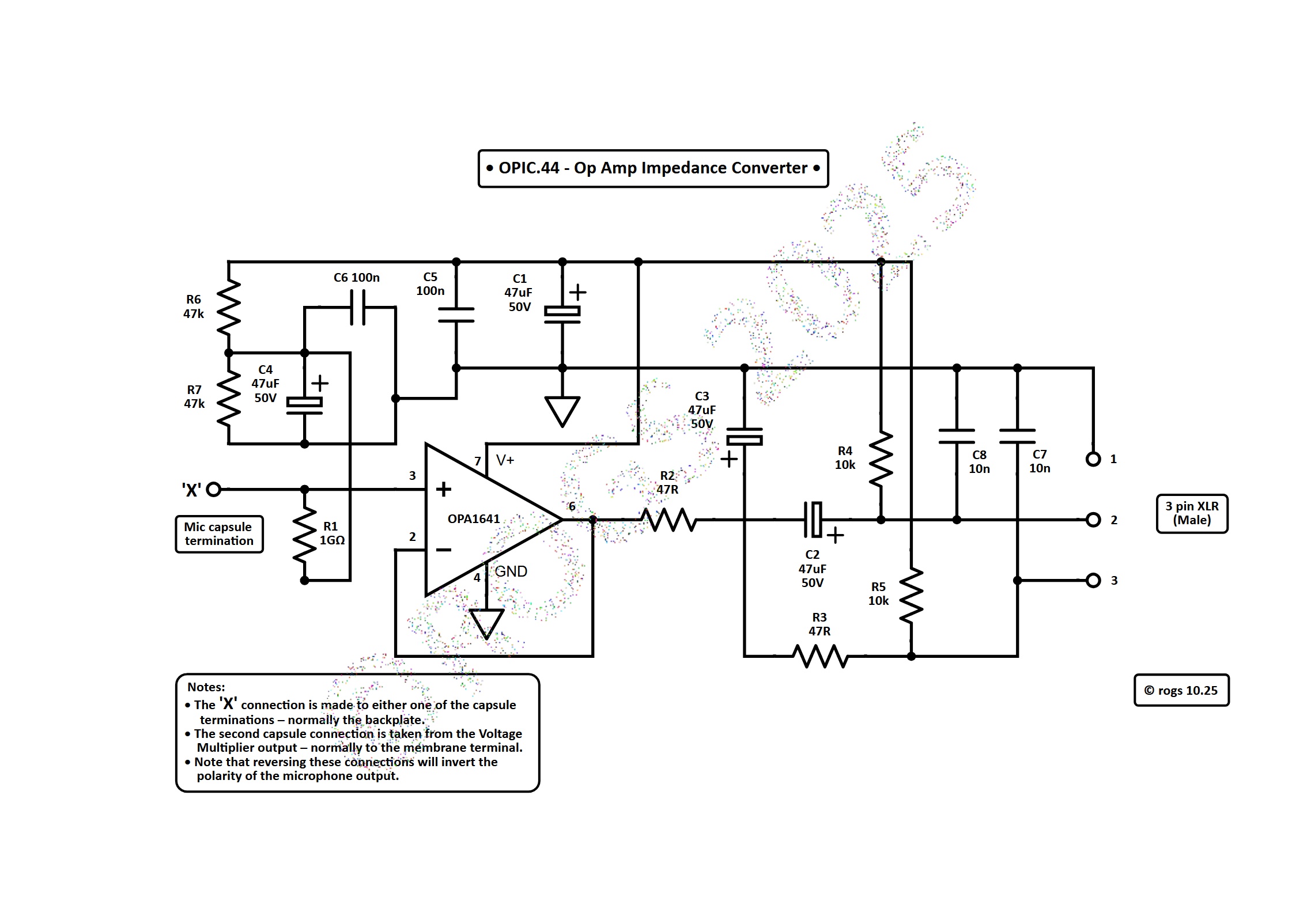 OPIC.44 is a new version of the OPIC.43 impedance converter and voltage multiplier schematic.
