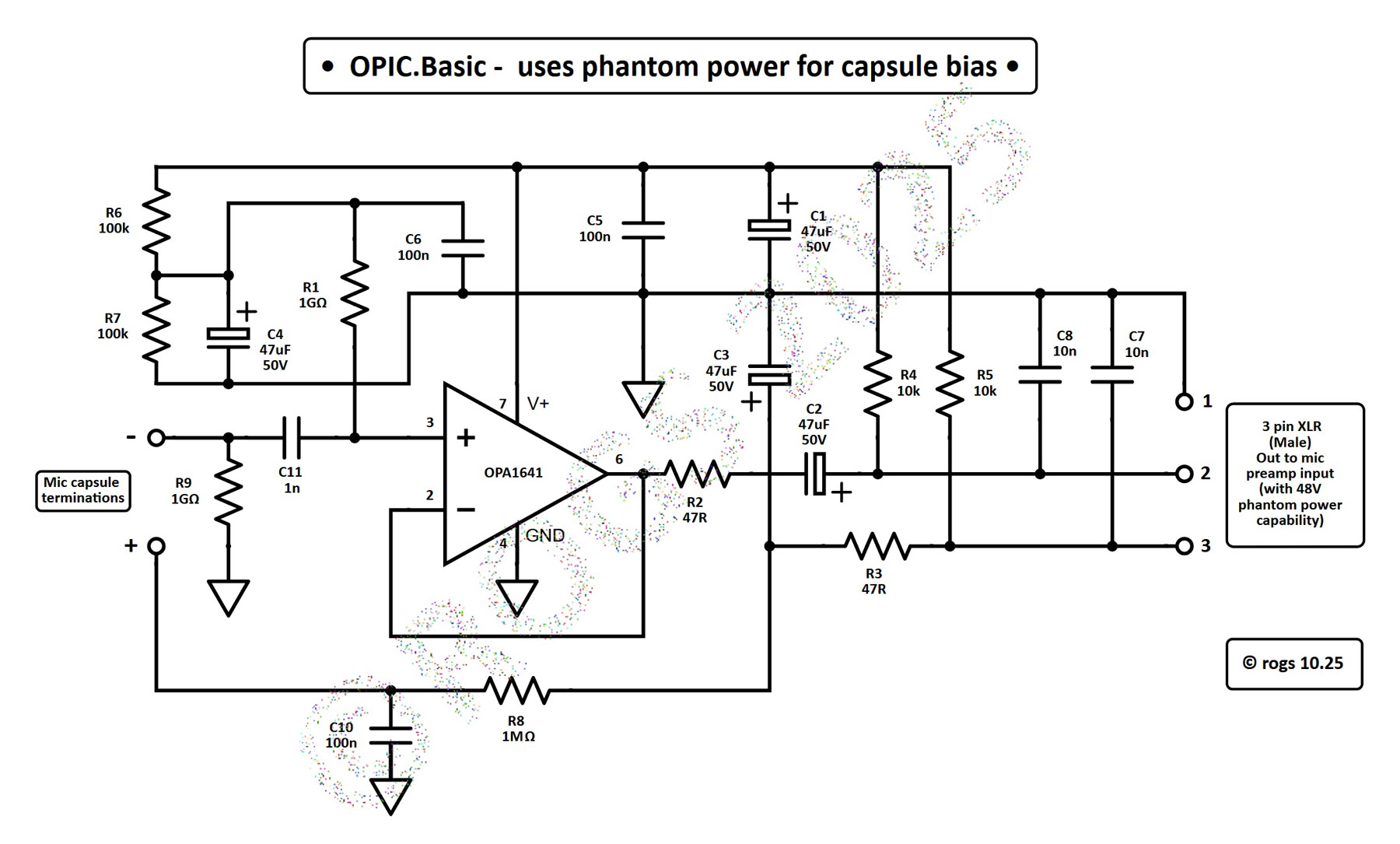 The OPIC.Basic circuit shown below uses the 48v phantom power to supply c.30v to the op-amp circuitry.
