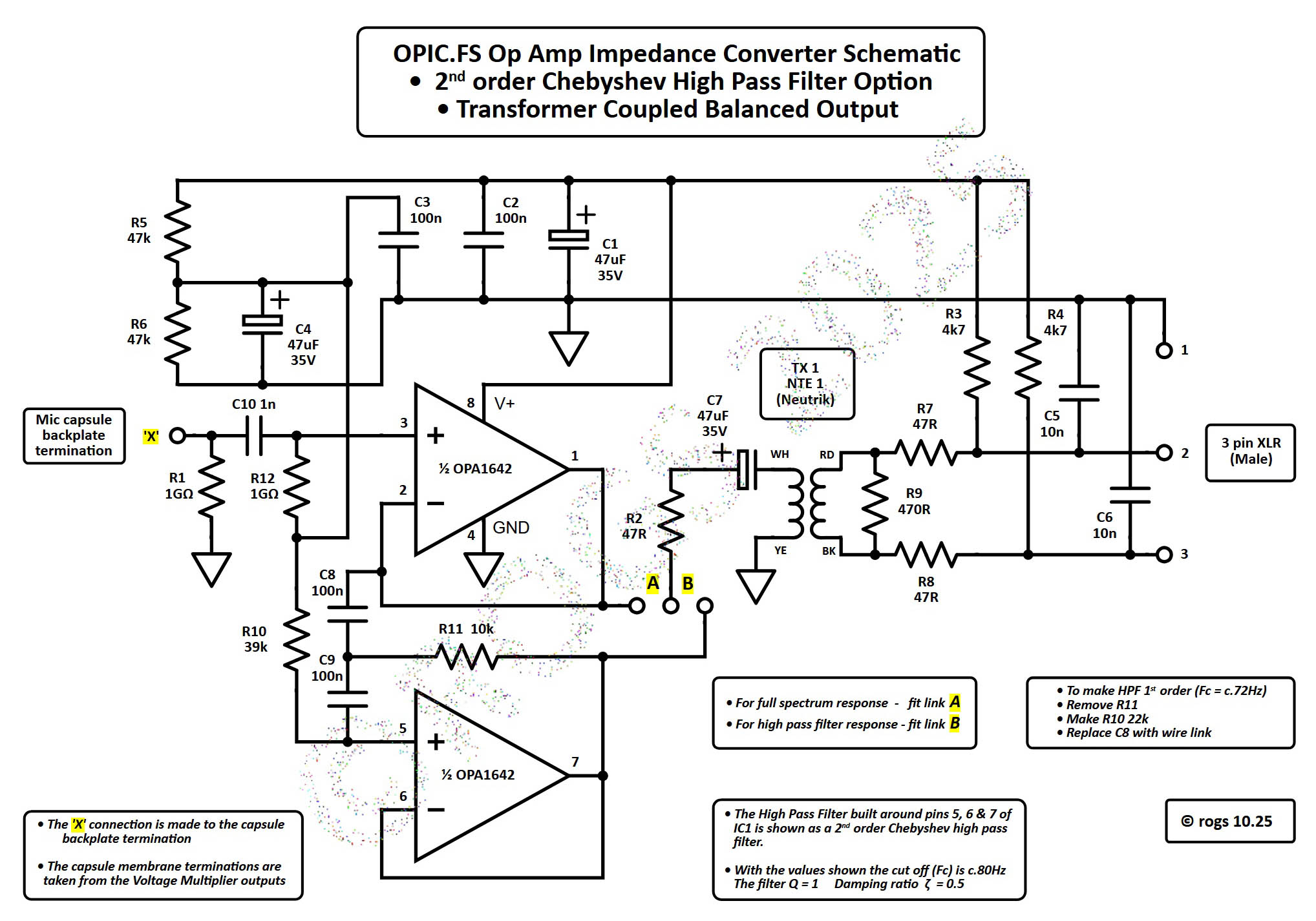 OPIC.45 is a new multi-pattern version of the original OPIC circuit, designed to work primarily with Arienne Audio's 'flat 47' dual sided capsule. Other dual sided LDC capsules - with well matched outputs - should also work OK.
